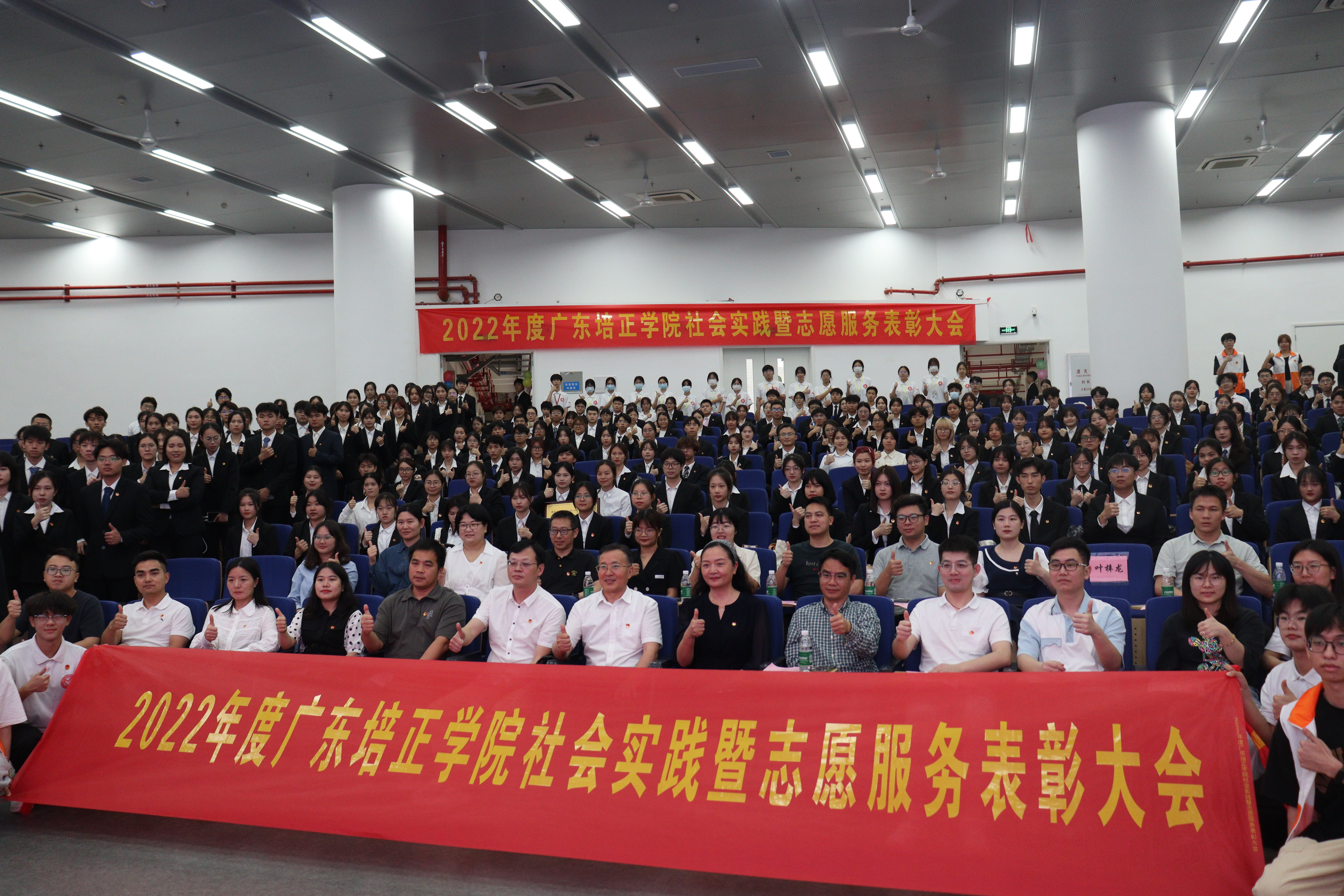 本网讯(校青协陈嘉欣)2023年4月19日,由校团委主办、校青年志愿者协会承办的广东培正学院2023年大学生社会实践暨志愿服务表彰大会在第五教学楼报告厅顺利举行。校党委书记武电平、校党委副书记邓惠出席大会。校团委、学生处全体老师、各二级学院团委书记和学生代表共计400余人参加。