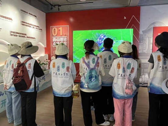 为了深入学习党领导人民不懈探索生态文明建设的理论升华和实践结晶,深刻领略“绿水青山就是金山银山”理论的重要意义,“行知”社会实践服务队于7月8日前往开平市“两山”展示馆开展学习调查。在讲解员的带领下“行知”社会实践服务队走过潭江水系的涌流发展,感悟开平市自然与人类和谐共处的共生之道,与此同时也深深感受到“时代使命与开平乡愁”的紧密联系。在讲解过程中,“行知”社会实践服务队了解到在污水治理中,开平市人民牢记习总书记的嘱托,以“三治五清”改善水生态环境,积极响应“绿水青山就是金山银山”,以实际建设促进开平市的绿色发展。近些年来,开平市主动创新创为,把生态环保、乡村振兴、全域旅游三项工作结合起来,以创建全国“两山”理论实践创新基地为抓手,统筹推进绿色生态创建工作,坚定不移地走绿色高质量发展之路。
